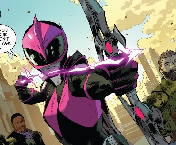 - Mimo,że jest Patrol Rangerką może zmienić się w formę Różowej Mighty Morphin Rangerki ze zbroją Smoka.