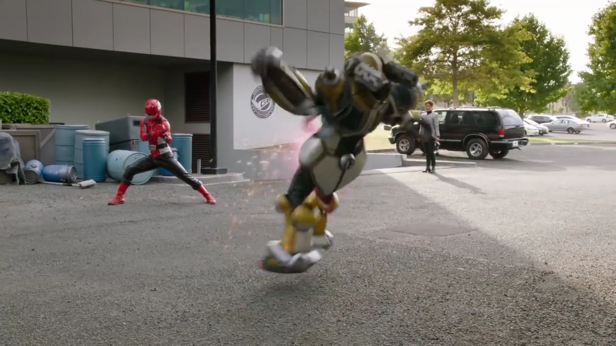 - During the first fight at the parking lot, the shift between American and Sentai footage is noticeably different.