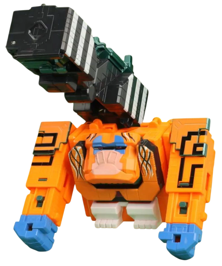 . It is a redeco of Cube Tiger. Forms the hips of Beast King and Beast Titan King, the right shoulder of Animal Jurassic King, and the left foot of Beast Jurassic Brachio King.