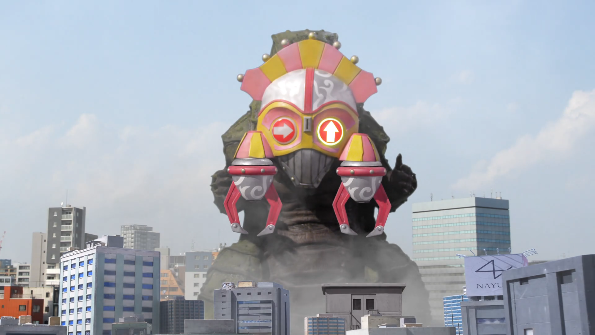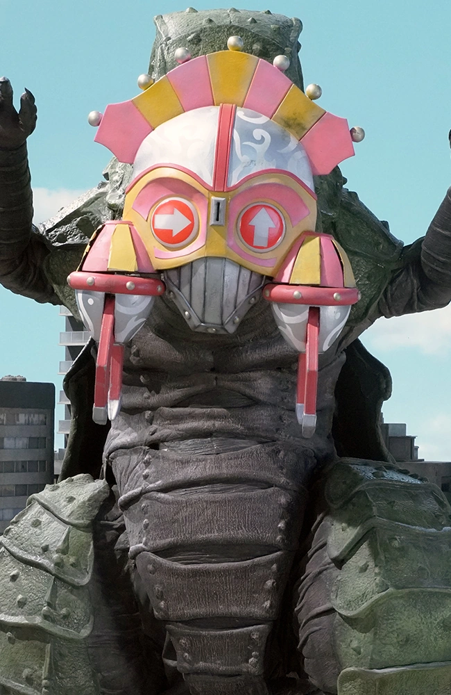 Catcher Ligany (キャッチャーリガニー Kyatchā Riganī) is a claw crane-themed Ligany Type Jamen Beast of the Dark Empire Yodonheim. It was released by the invasion gate created from the dark energy gathered by Joystick Jamen.