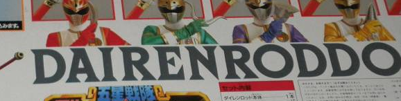Dairanrod[1] (ダイレンロッド Dairen Roddo) or Dairenroddo[2] are a set of red staff that each of the core Dairangers possess. By channeling their Qi into their rods, the Dairangers can morph the end into a blade unique to each member - a guandao or naginata/bisento for RyuRanger, a sasumata for ShishiRanger, a monk's spade for TenmaRanger, a spear for KirinRanger, and a two-handed flanged mace for HououRanger-increasing the rods' offensive capabilities as well as allowing them to perform the Rod Arrow Technique where they hurl them as projectiles. This Rod Arrow attack is sometimes used to surround and thus imprison an enemy with the Rods, opening them up for a Qi Bomber finisher.
