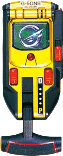 The Handle Blaster (ハンドルブラスター Handoru Burasutā) is a weapon which transforms from the steering wheel controls of the primary Go-Ongers while in Engine-O G6, Engine-O G9 or Engine-O G12's cockpit. Normally in Handle Mode (ハンドルモード Handoru Mōdo), this weapon also serves as the means for the core Go-Ongers to control their Engines and their combinations.
