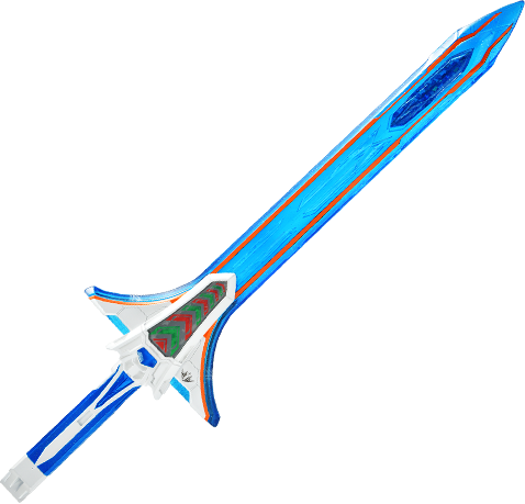 The Kiramai Sword (キラメイソード Kiramei Sōdo) is the primary sword weapon of the main five Kiramagers, primarily used by Kiramai Green and Blue. Aside from offensive capabilities, it can generate crystals on its blade to form a fan-shape to be used as a shield. Like the Kiramai Shot, it is made from Blue Diamond. To finish an opponent, the hilt's button is pressed to charge the blade for devastating slashes. The weapon forms the bayonet blade of the Kiramai Buster.