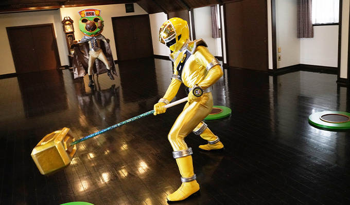 The Yellow Stone Hammer (イエローストーンハンマー Ierō Sutōn Hanmā) is a special weapon for Kiramai Yellow created from Juru's imagination that is combined from the Yellow Kiramai Stone and a Kiramai Sword. It was created specifically for Tametomo to use in Whac-A-Mole Jamen's game.
