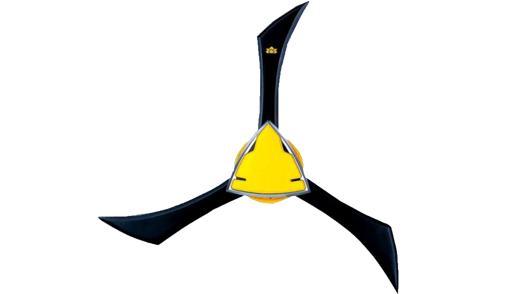 The Earth Slicer is the Yellow Ranger's individual weapon which resembles an oversized shuriken. It has three black blades and can be used as a melee weapon, act as a shield against weak energy blasts, or be thrown like a boomerang.