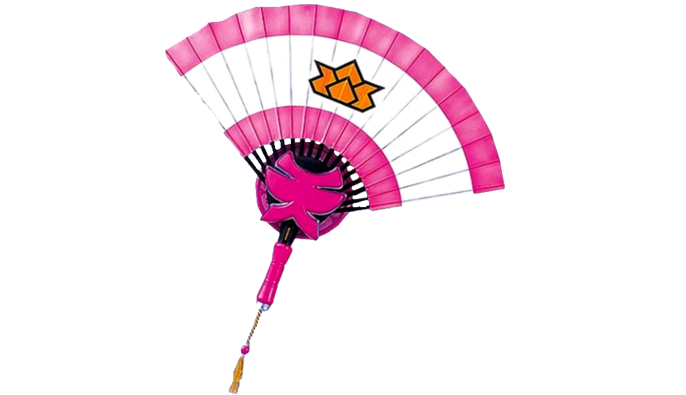 The Sky Fan is the Pink Ranger's individual weapon which resembles a tessen (Japanese war fan), and includes a decorative tassel. The pink disk goes on its back area. It can fire intense pink energy waves when swung strong enough to defeat Moogers with one hit. It could also unleash a massive pink energy slice that, when combined with an energy arrow from the Hydro Bow, was able to destroy Doubletone.
