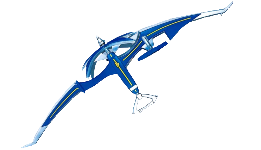 The Hydro Bow is the Blue Ranger's individual weapon which resembles a yumi (Japanese bow and arrow) but also has been modernized to be all one piece and have a pump and sling propulsion system. To execute an arrow attack, the Blue Ranger pulls on the handle of the pump as one would an arrow and releases it to activate propulsion, mimicking the arm movements of one using an actual bow and arrow. At full power, when combined with an attack from the Sky Fan, it was able to destroy Doubletone.