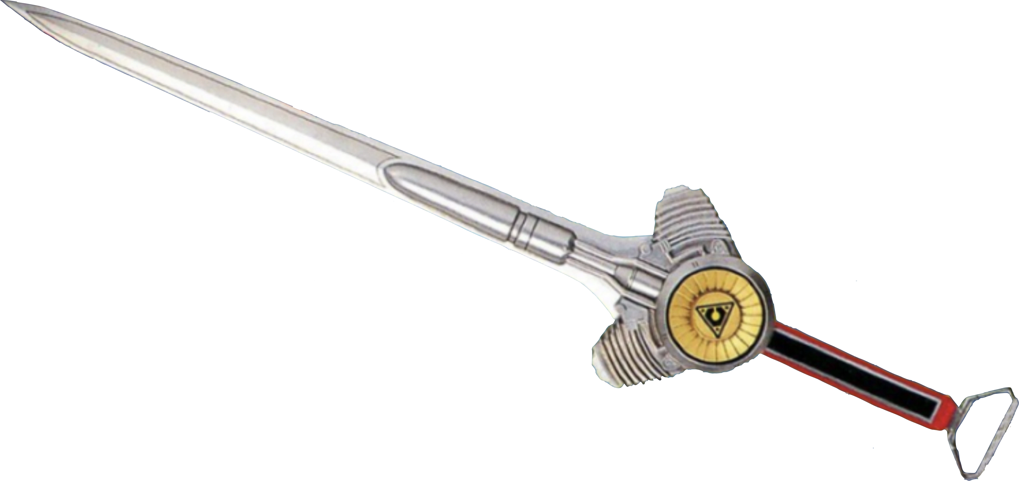 The Turbo Lightning Sword is the Red Ranger's own personal weapon. It is a long sword with a red hand shield. When it is fully charged it can unleash a devastating attack. It becomes the top of the Turbo R.A.M. cannon.