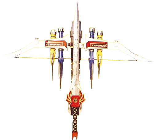The Legendary Weapons (伝説の武器 Densetsu no Buki) are weapons that spawned from the slain body of a five headed dragon when it became apparent that the weapons stored in the temple were insufficient to face Bandora's monsters after breaking them all during practice. Goushi uncovered a story in the Dino Chronicles about the Legendary Weapons. Going in search of them on the Continent of Despair, the Zyurangers eventually found the ancient castle they were hidden in but were trapped when Bandora cast a spell on them that froze them in place. As the curse of the Continent began to turn the Zyurangers to stone, Geki appealed to the desire of the Legendary Weapons to see justice prevail at which point the weapons came to life and flew into their hands.