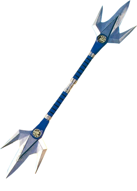 The Ranger Stick (レンジャースティック Renjā Sutikku) is the primary sidearm of the five core Zyurangers which can transform into either the Ranger Sword (レンジャーソード Renjā Sōdo) or the Ranger Gun (レンジャーガン Renjā Gan). In stick mode, the Ranger Sticks can be used to perform the Babel Attack (バベルアタック Baberu Atakku) where Tiger and PteraRanger stand on the shoulders of Tyranno, Tricera, and MammothRangers before bringing the tips of the Ranger Sticks together to form a pyramid shaped energy blast that is then fired at the opponent.