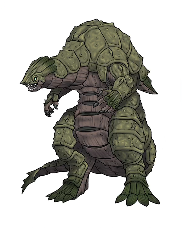 Ligany Type Jamen Beasts have barbed skin and shelled hunchbacks: