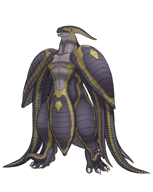 Gomoryu Type Jamen Beasts have bat-like bodies, four legs, two tails, and cannons on their shoulders: