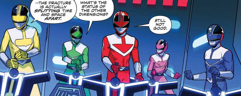 COMIC STORY- Mighty Morphin Power Rangers 2018 AnnualMost of the Rangers don't make it, after encountering a disturbance in the time stream, but Jen Scotts helps the other Rangers rally more Rangers from other new universes to combat the threat.