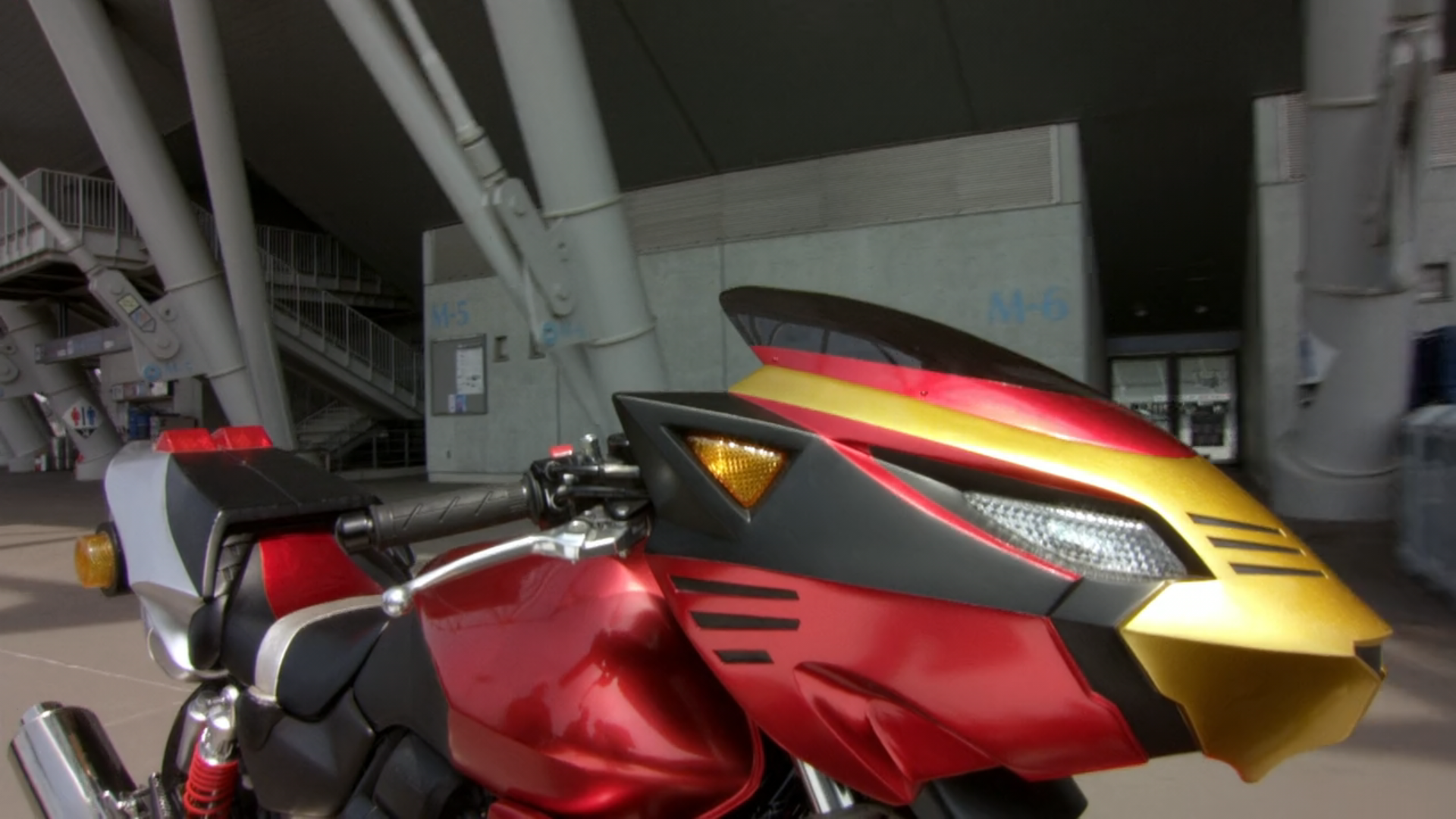 Cheeda Nick Motorbike Mode (チダニックモーターバイクモード Chida Nikku Mōtābaiku Mōdo): Cheeda Nick can transform into a motorcycle for his partner, Red Buster. His face then becomes the handles and the speedometer. The base model is a Honda CB400SF.