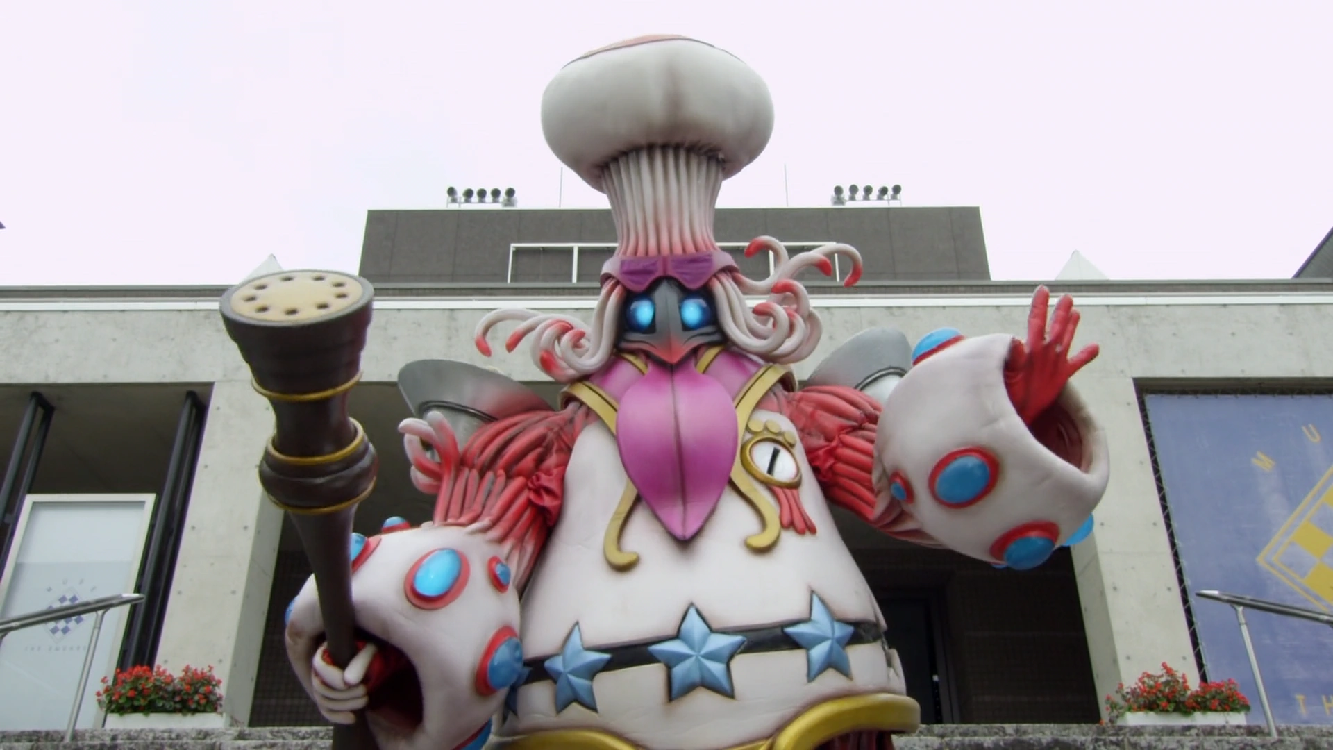 So instead he used his combo to force feed Sela with his Super Calorie Sushi, but Mr. Rei arrived in the nick of time and takes the blow and for that he used Gourmace to send a bloated Mr. Rei blasting off into the sky. After that he was then attacked by the Zyuohgers where he was then defeated by the Zyuoh Final.