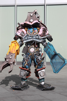 - His design is based on a car crusher. Peshango was meant to resemble a monster made in a scrap factory. In addition, K-SuKe remarked that the pink Cadillac that forms his upper torso is meant to be Elvis Presley's car.