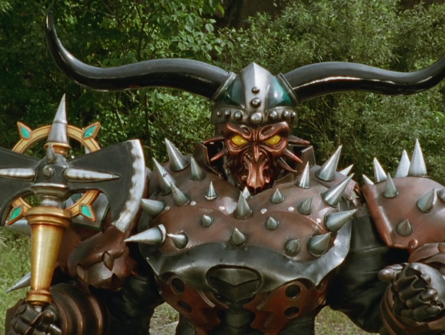 Destruction King Battobas (破王バットバス, Haō Battobasu, 1-49, Gingaman vs. Megaranger) is the Viking-themed leader of the Battobas Majin Corps, and the fourth, final, and strongest of the Balban Generals to face the Gingamen. A weapons and tactical specialist; Battobas is considered by Captain Zahab to be "his right arm", which suggests a longer relationship between them than the rest of the generals. He also has a long relationship with Dark Merchant Biznella, whom he hired on to be his second-in-command after Captain Zahab seized Biznella's ship, as compensation for the loss of the Steel Starbeats Biznella had sold to them earlier.