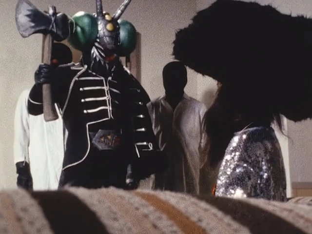 Banba walks, detecting a signal from Tokyo Hotel Urashima, making his sense to infiltrate the perfect hiding place, while Iron Claw plans to attack ISSIS HQ with his strategy, to launch a surprise attack from the back as ISSIS' main entrance is heavily guarded; Mantis sees there's something weird on Iron Claw's hat: an electronic transmitter, claiming how Banba has done with it, leading him to take a woman disguise. When Banba as the hotel bellboy disguise knocks the door, he's here to service in her room, admitting him to change the cloths; Iron Claw changes in true form in a moment, changing back to woman disguise. The bellboy sneaks the room, spotting the photo of a woman as an inspiration for Iron Claw to disguise. Banba comes to a woman, but this time he grabs a red rose, offering it to a woman, but he admires something beautiful. A woman waits, this time he disguised as an one-eyed driver who offers a destination, as she want to go to Daisen-ji, to see the temple. She comes to the temple, but the driver spys at her, thinking if he winks, he won't be able to keep an eye on her.
