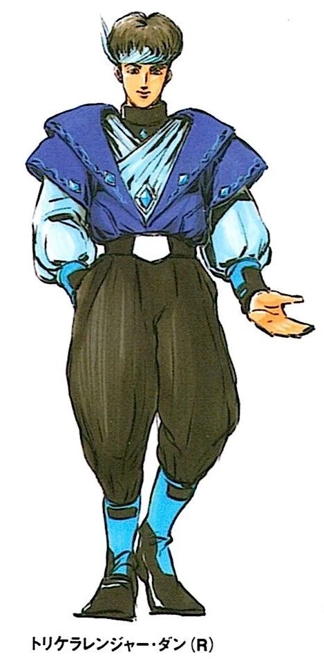 Don was a member of the Etoffe Tribe, one of five tribes that lived in harmony with dinosaurs some 170-million-years ago. The Etoffe Tribe worshiped the triceratops. The five tribes later went to war against the evil witch Bandora who sought to bring an end to the age of dinosaurs. Ultimately, the Guardian Beasts stepped in to end the conflict by exiling Bandora and her followers on the planet Nemesis. With their kingdoms in shambles and the dinosaurs facing extinction, Dan joined Yamato Tribe Prince Geki, Sharma Tribe Knight Goushi, Dime Tribe Knight Boi, and Lithia Tribe Princess Mei in going into suspended animation only to be revived should Bandora ever return to terrorize the Earth once again. Their resting place was placed in a secret underground lair 2000 km under what is now present-day Tokyo and left in the care of the Mysterious Sage Barza.