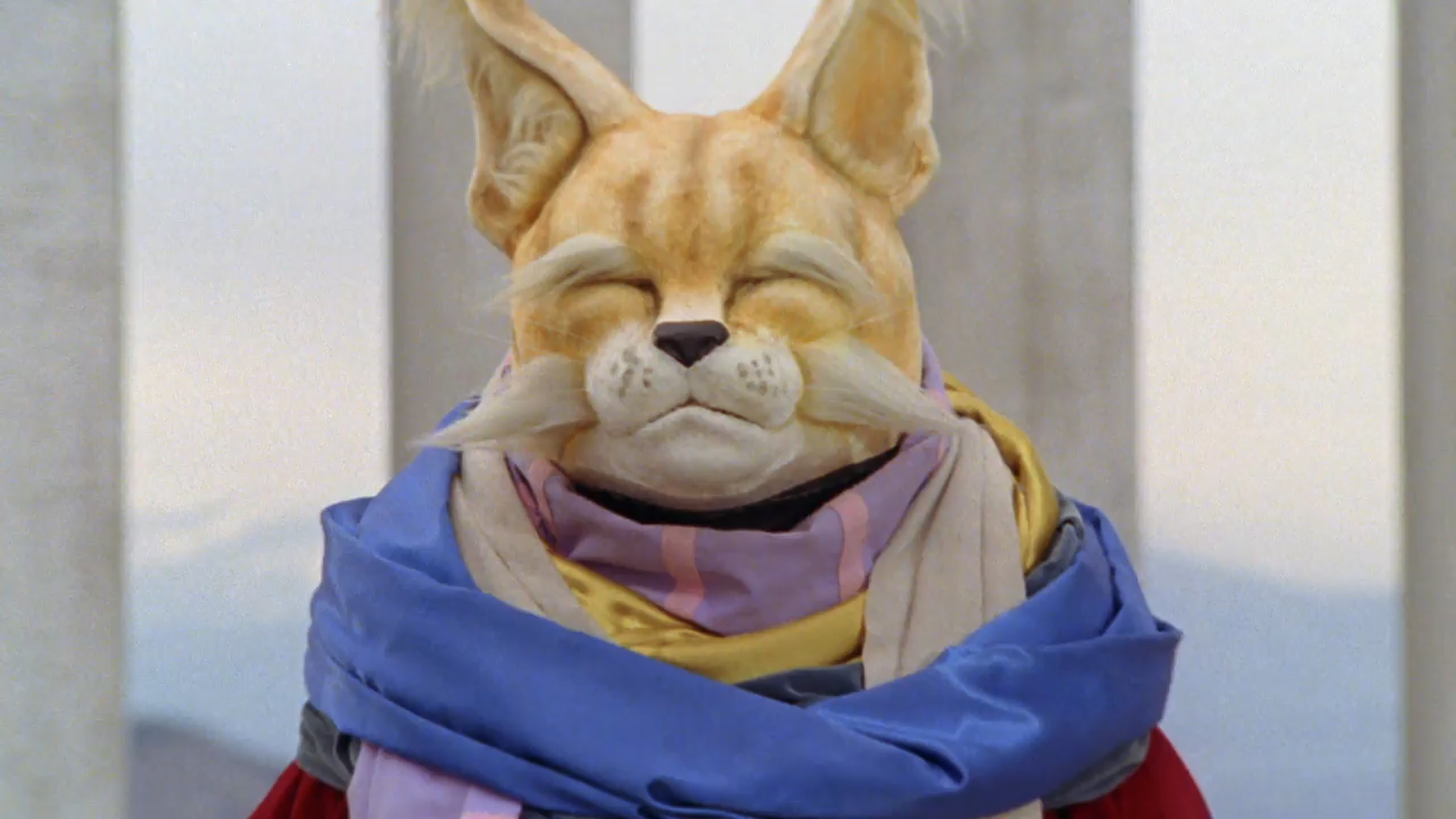 Master Sha-Fu (マスター・シャーフー Masutā Shā Fū) is a grand master of the Fierce Beast Felis-Fist (激獣フェリス拳 Gekijū Ferisuken) style. He is the mentor of the Gekirangers and leader of the Fist Sages, mastering all three of its aspects and able to channel Extreme Ki. He seemed to had a relationship with Rageku prior their transformations, with him spurring her love for him. He was originally a friend of Maku; however, Sha-Fu turned down Brusa's offer to be his successor and suggested Maku. This act of kindness wounded Maku's pride and ended their friendship, which Sha-Fu regretted ever since. Sha-Fu appears to be an aged anthropomorphic caracal with his eyes normally closed, opening them when he gets serious and deep like sensing the qi like those of the Akugata. He loves to be scratched on the neck, referred to by Jan as "Cat" (猫 Neko), and always carries around a triangle with him. His motto is "There is training in one's livelihood" (暮らしの中に修行あり Kurashi no naka ni shugyō ari), as his training has the Gekirangers learning from the various things life has to offer. While helping Jan, Sha-Fu found one of Long's scale in the ruins of Jan's hometown, learning the truth behind Maku's betrayal among the revelations of Rio and Jan's past encounters with Long.
