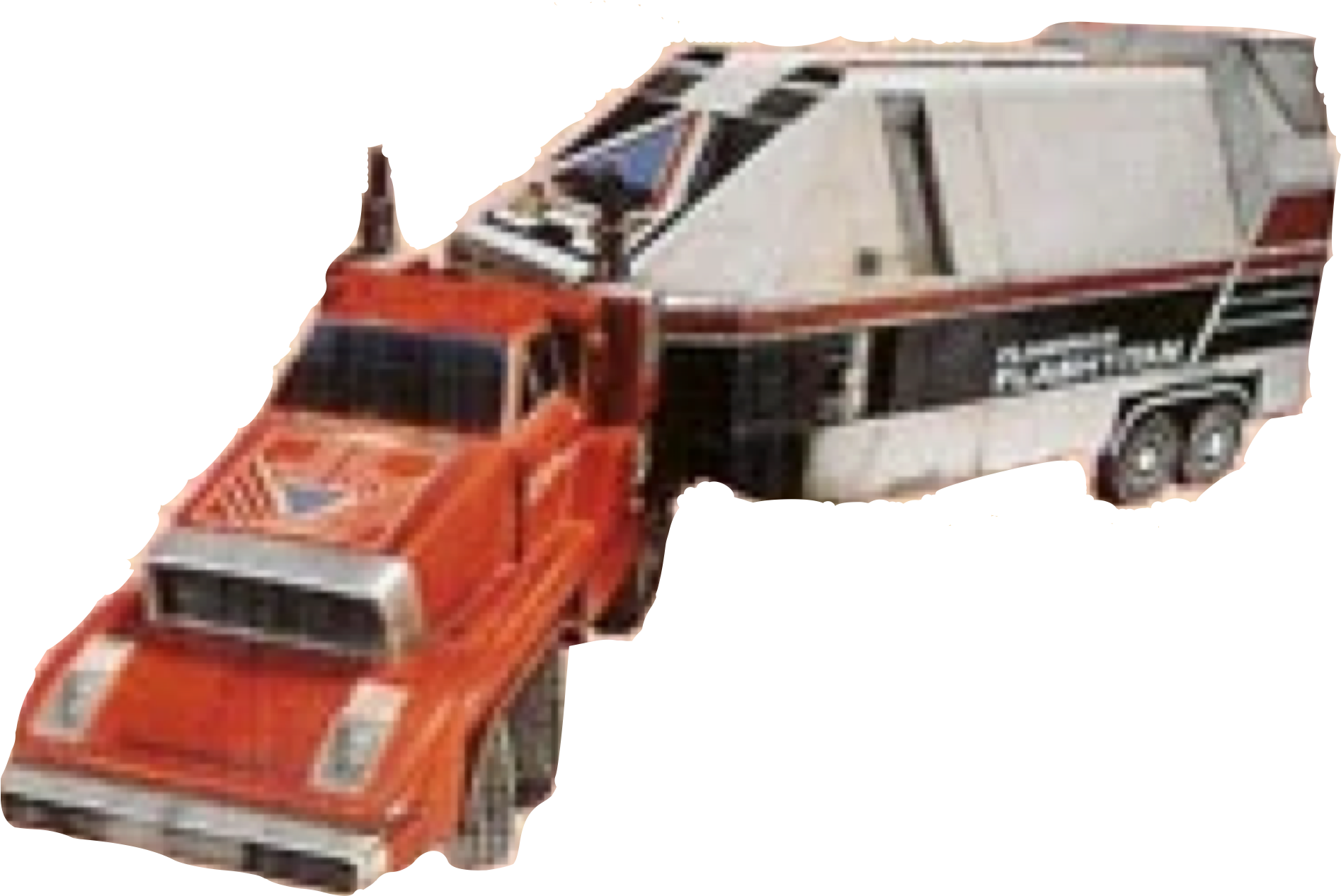 Flash Titan (フラッシュタイタン Furasshu Taitan) is a tractor-trailer-like backup mecha for the Flashman and the first secondary mecha in Sentai history. Flash Titan is armed with a dual missile launcher that deploys from its engine hood while the cab and trailer can convert into an airship mode.
