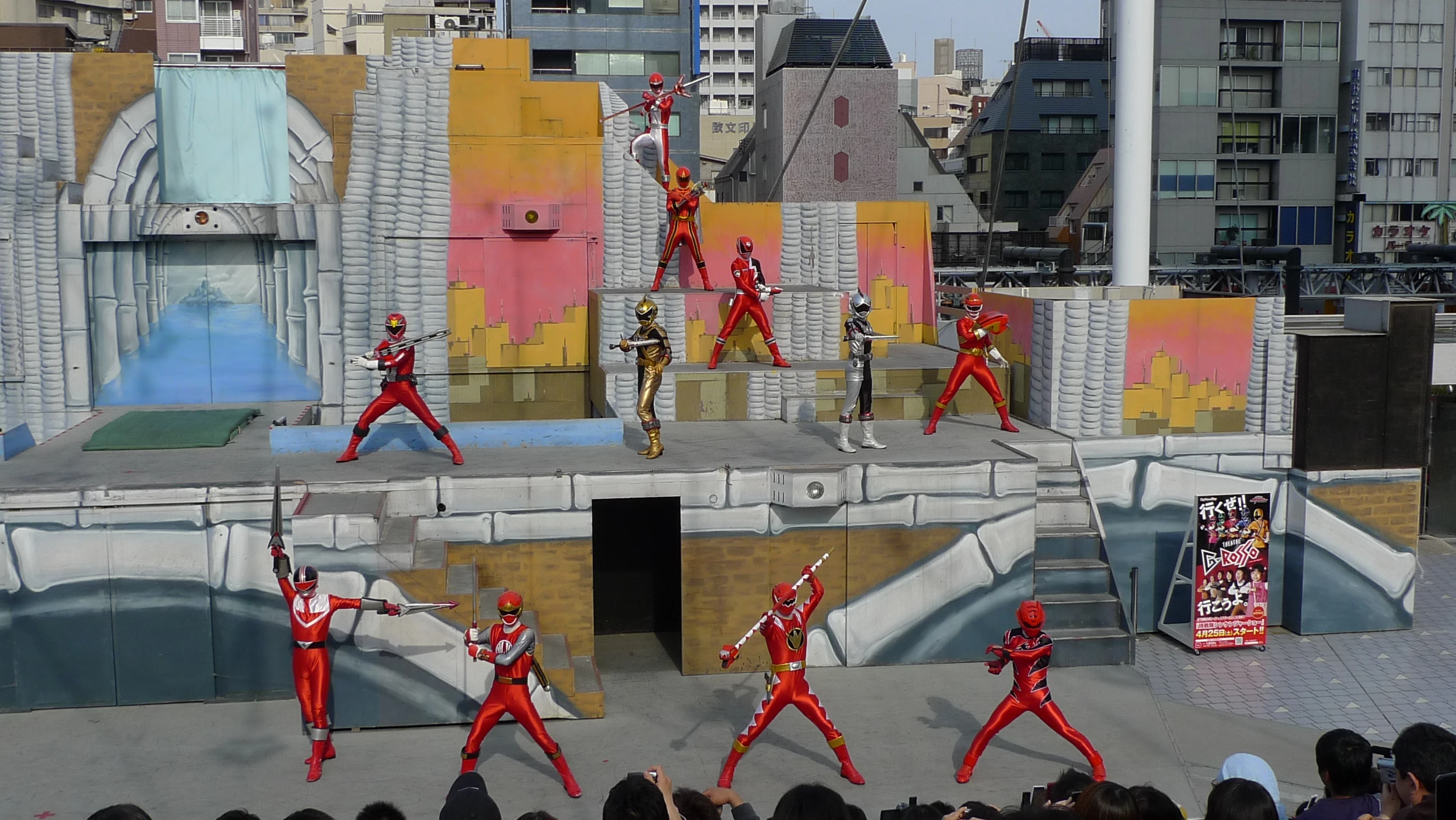 In a stage show where Go-On Red, & Go-On Wings are seen fighting their usual foes, a Londerz Family, Demon Tribe Org, Space Ninja Group Jakanja, Invasion Garden Evolian, Rainian Agent Abrella, Underground Hades Empire Infershia, Arch Priest Gajah, & Confrontation Beast-Fist Akugata, show up and wind up defeating them, Time Red, Gao Red, HurricaneRed, AbaRed, Deka Red, Magi Red, Bouken Red, & Geki Red arrive asisst Go-On Red & Go-On Wings.