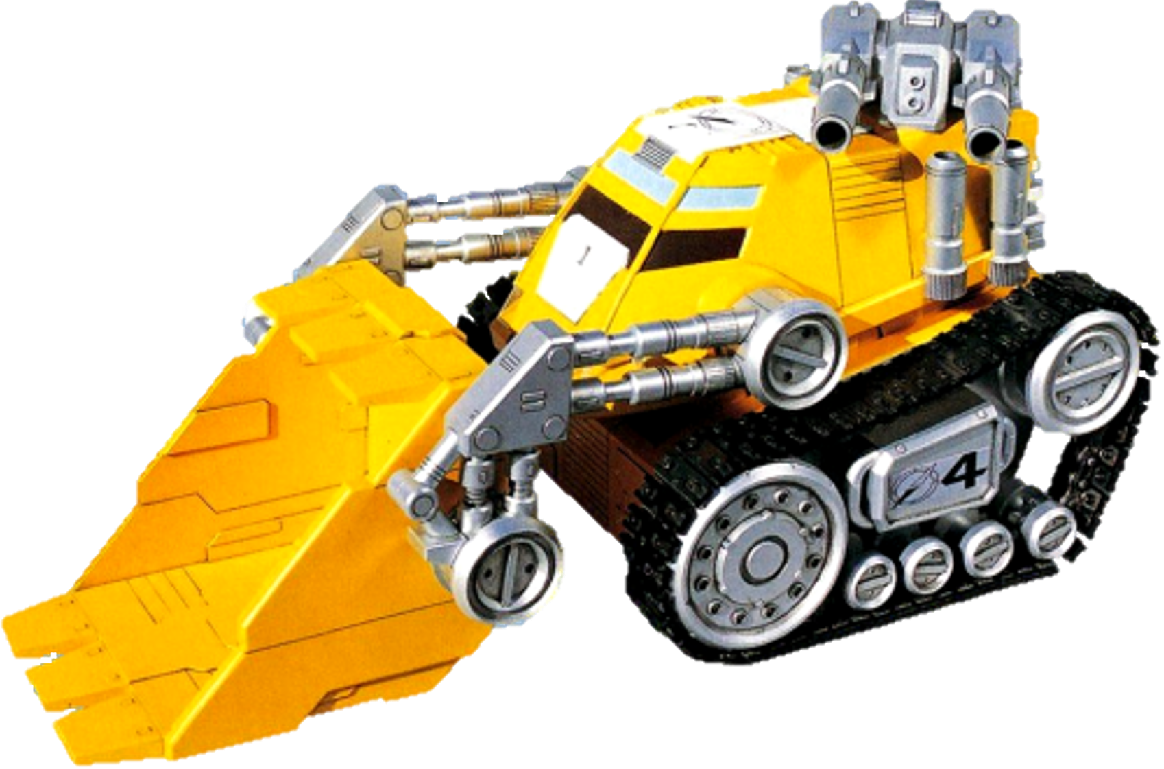 The fourth GoGo Vehicle, GoGo Dozer (ゴーゴードーザー Gōgō Dōzā), is piloted by BoukenYellow, who draws her power from its Parallel Engine. Modelled after a bulldozer, it's bucket is resilient enough to throw monsters off of their feet while it's dorsal turret supplies cover fire.