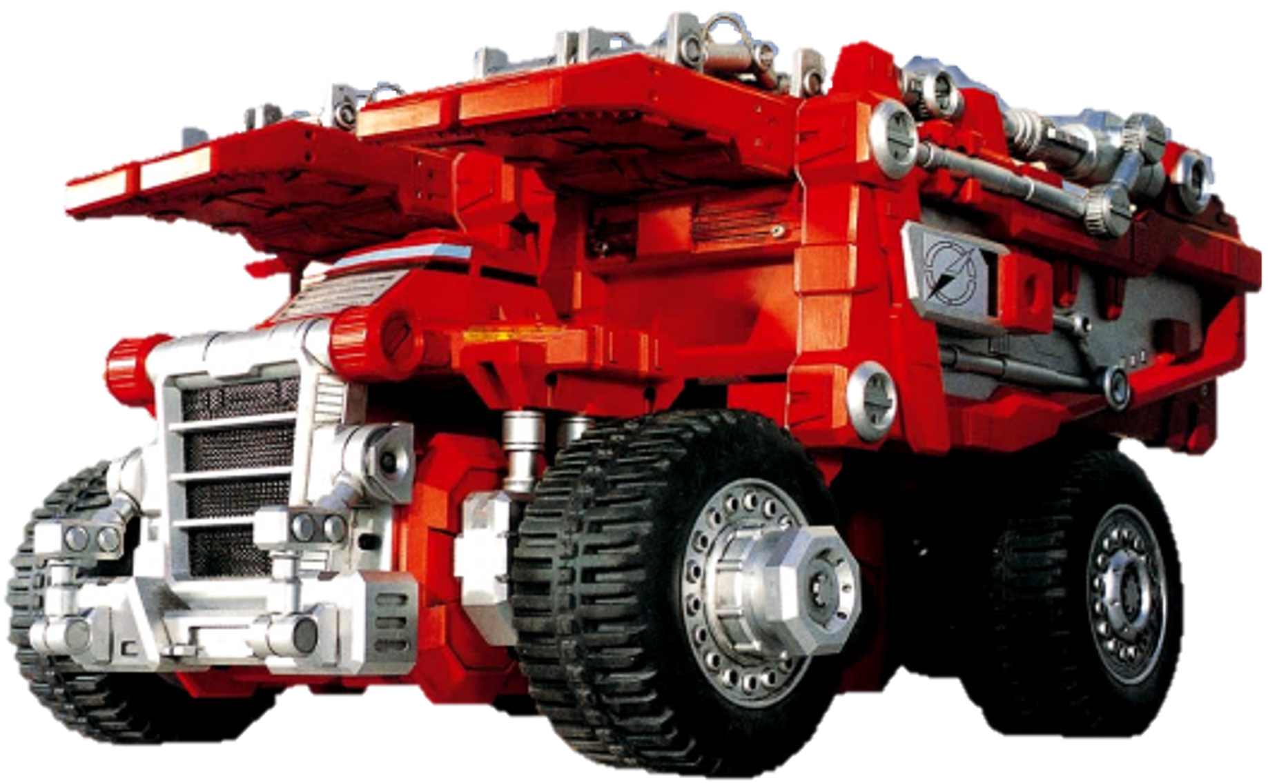The first GoGo Vehicle, GoGo Dump (ゴーゴーダンプ Gōgō Danpu), is piloted by BoukenRed, who draws his power from its Parallel Engine. Based on a dump truck, GoGo Dump is equipped with two separate buckets which can change into a pair of manipulator arms. Additionally, each front wheel is equipped with a pressure jack, allowing any of the supplementary GoGo Vehicles to attach for GoGo Dump's use.