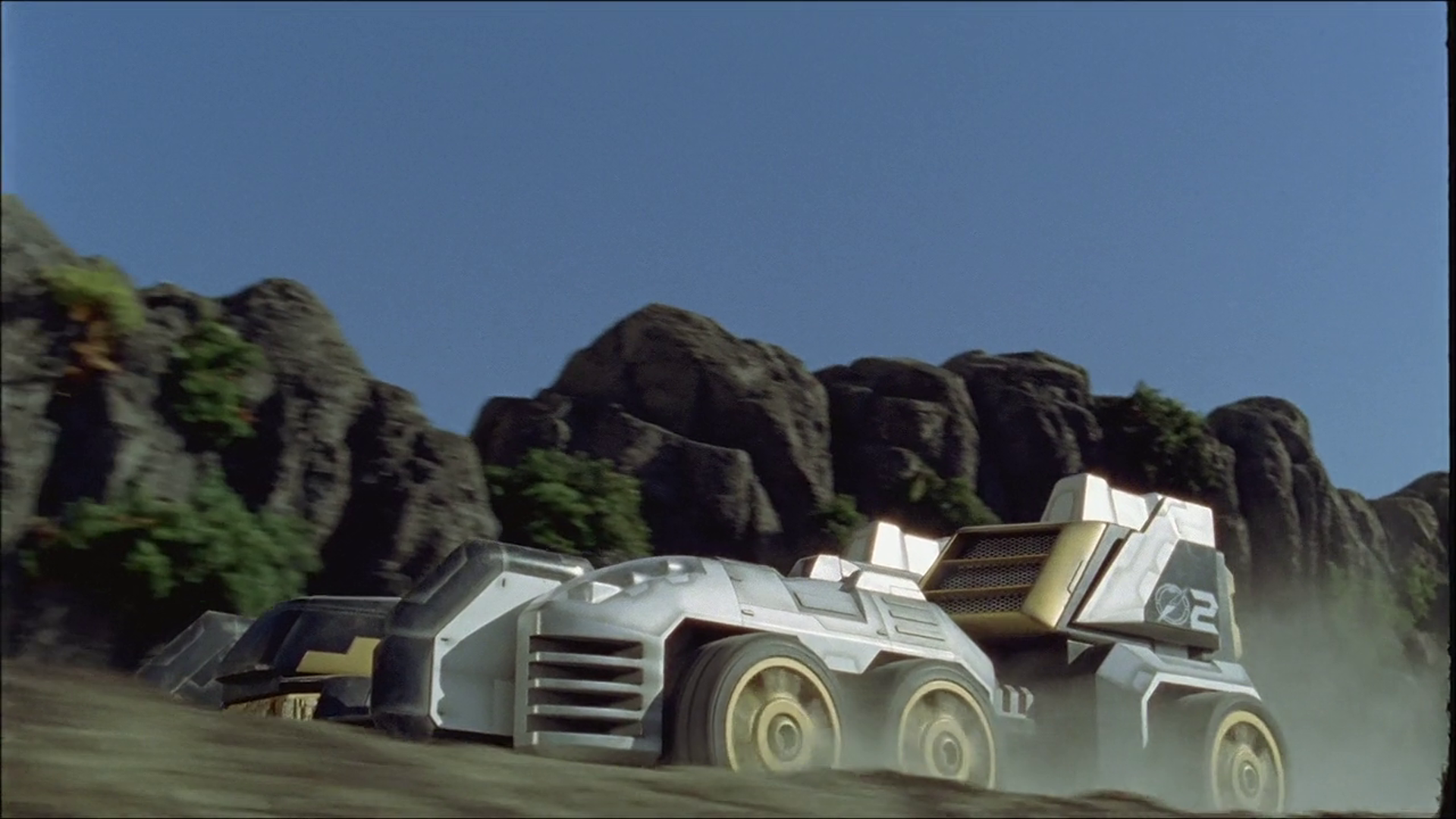 The second GoGo Vehicle, GoGo Formula (ゴーゴーフォーミュラ Gōgō Fōmyura), is piloted by BoukenBlack, who draws his power from its Parallel Engine. A stylized hybrid of a formula race car and an armored vehicle, GoGo Formula is equipped with a multi tube missile launcher which it deploys by folding up its front bumper.