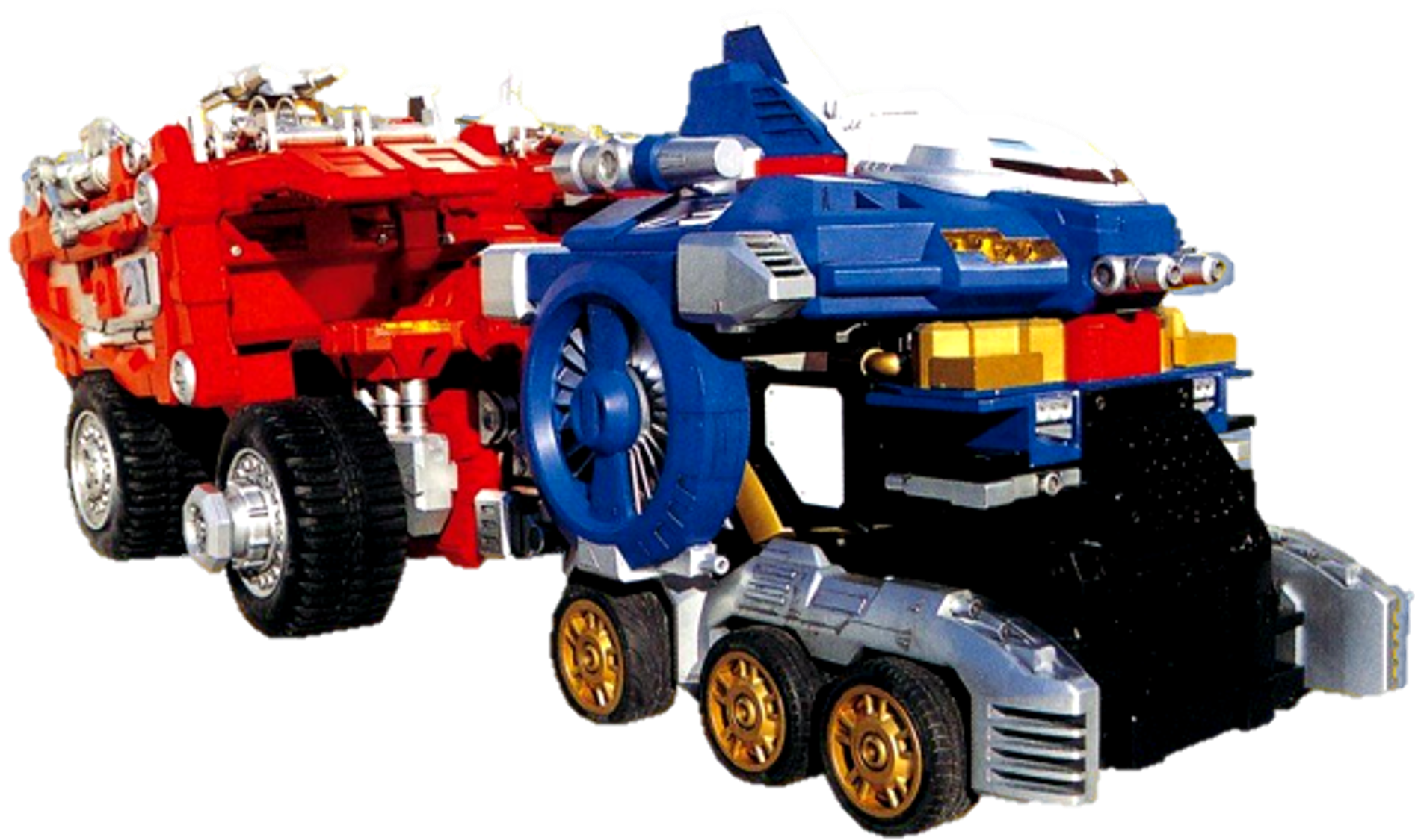 In addition to DaiBouken, GoGo Vehicles 1-5 can combine into the GoGo Trailer (ゴーゴートレーラー GōGō Torērā) with the command, Trailer Formation (トレーラーフォーメーション Torērā Fōmēshon). However this command was never used in the show, and GoGo Trailer only appeared in the opening of the first episode. Its license plate reads: SGS BK-5050. The toy version was able to mount the Go Scooper and Picker on the sides of the trailer section.
