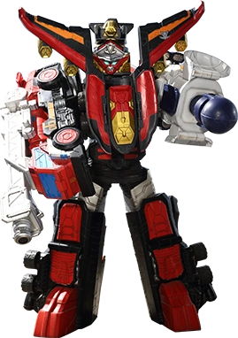 Despite its large, seemingly incumbent size, it is extremely agile and durable, being able to slide with the vehicles by its feet, jump, and use all Vehicles to great effect in close quarters combat. The four arms and ankles can also use the weapons attached to them alongside their special abilities such as Yellow's energy buzzsaws and Gold's gun ability. It can overpower even the likes of Lymon, a Status Gold, the toughest challenge both teams had encountered at the time.