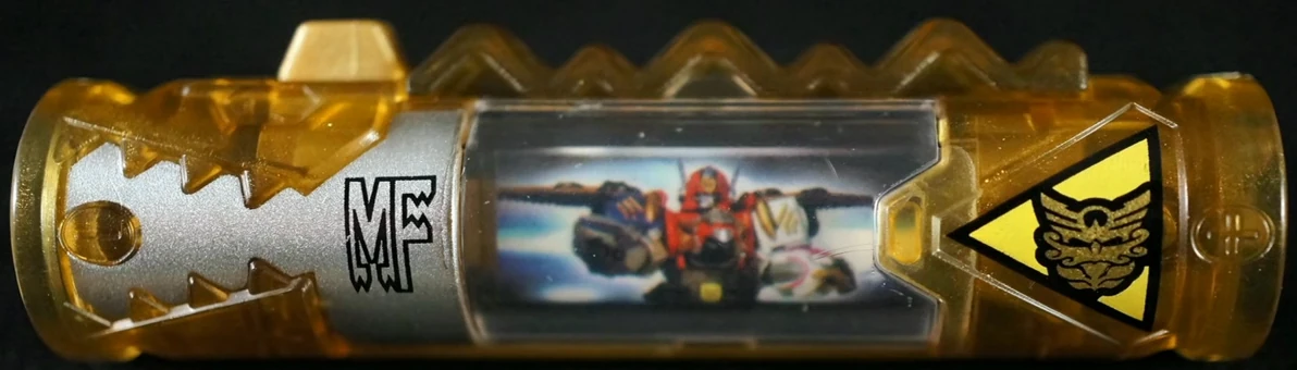 Gosei Great Megazord represents the Mega Rangers for the Megaforce Dino Charger, released as part of Dino Charger Power Pack Series 3 with each charger depicting four pictures. In Megaforce's case, it featured Megaforce Red, Robo Knight, the Gosei Great Megazord, and the Megaforce title. This Charger was paired with the MMPR Dino Charger.