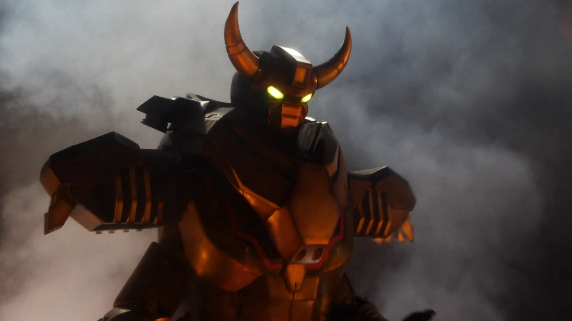 However, their feet began to hurt due to this hot grils, but Great Bullfighting World is not as he is used to the heat. During the fight, he fires a beef tongue to wrap around the ZenKaijuOh, but Zocks separates himself from the mech as he began eating it. Then, they tried to open fire at the Great World with Kaiju Max Blaster, although their attack was sucked up into the smoke hood.