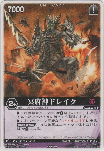 Hades Ultimate God Drake is a playable character in trading card game Rangers Strike.
