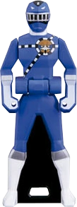 The ToQ 0gou Blue Ranger Key (トッキュウ0号ブルーレンジャーキー Tokkyū Zero-gō Burū Renjā Kī) is a Ranger Key released as part of the Ranger Key Set: RAINBOW EDITION. It is unknown if it will appear in a future crossover. Of course as with all Ranger Keys, should it exist, it would be able to transform one, i.e. Gokai Blue, into ToQ 0gou Blue.