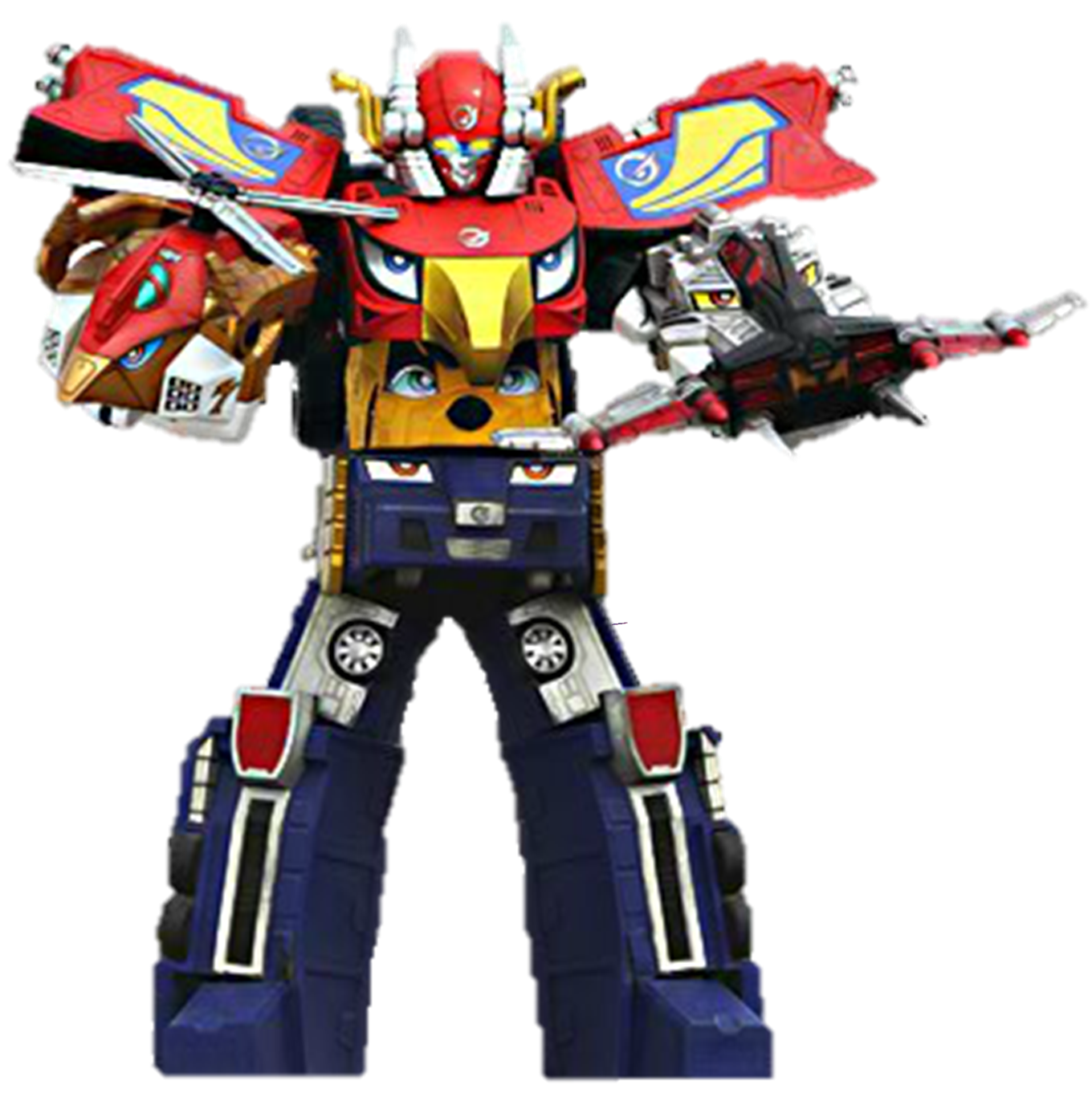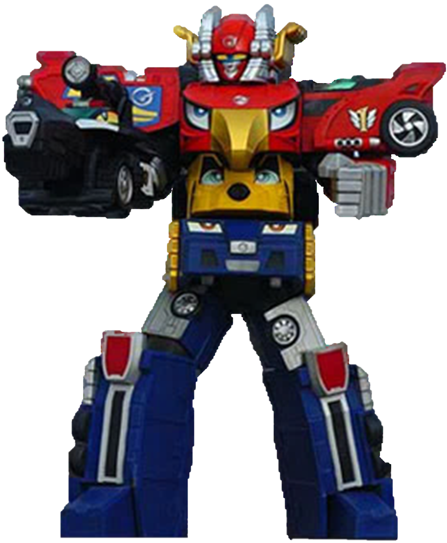The High Octane Megazord is formed when the Zord Attack Vehicles of the Red, Blue and Yellow Ranger Operators come together.