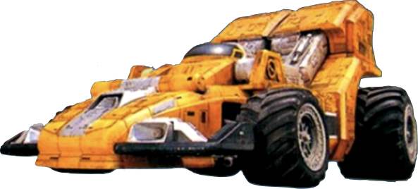 V-Dozer (Vドーザー Bui Dōzā): Yellow Racer's Victory Ranger Vehicle: a combination formula racecar/front loader whose spoiler can be transformed into a bucket for lifting or catching objects. It transforms into Dozer Fighter (ドーザーファイター Dōzā Faitā), whose head is modeled after a race car driver's. It forms VRV Robo's left leg. It is stored in Victorailer's second trailer, to the left of V-Police. Its suit actor was Masaru Ōbayashi.