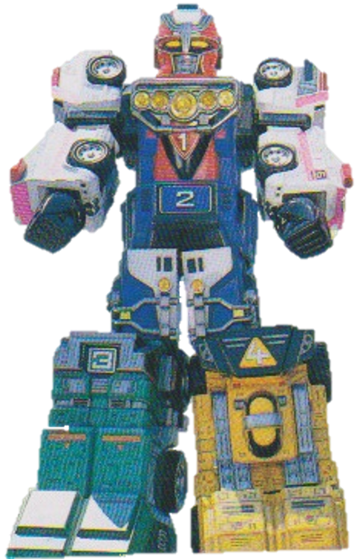 The Deluxe VRV Robo toy's instructions showcase an alternate combination using the V-Fire, V-Police, Green Vehicle, Yellow Vehicle, and Pink Vehicle could also be formed, although this wasn't seen in the show.