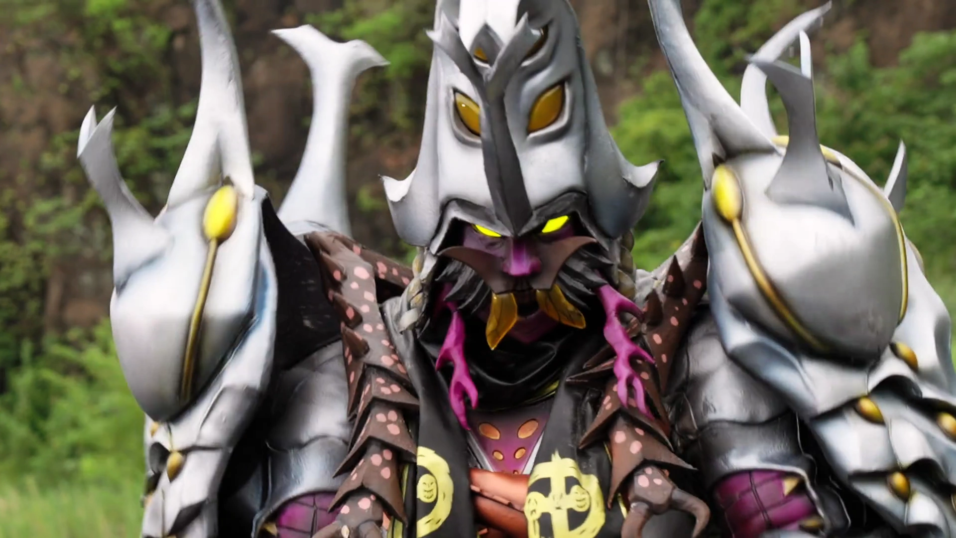 Kabutobushin stands over the destroyed city and his body reacts abnormally due to the Brave not settling into his cells yet. He shrinks down and retreats. Sitting on his throne, he declares that the time to obliterate humanity is here. As the Zorima fend off against Daigoro, Amy and Gira, Kabutobushin arrives and puts the fight to an end with devastating slashes. Now that he has been fully restored, he engages in combat against the three as boast about their strength being obsolete to his.