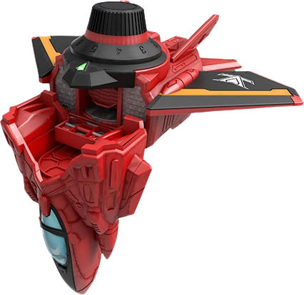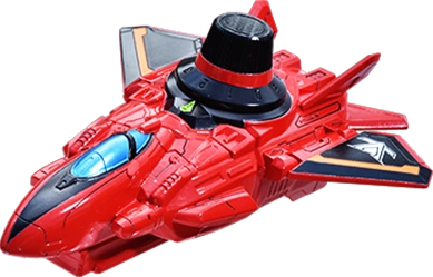 The Red Dial Fighter (レッドダイヤルファイター Reddo Daiyaru Faitā) is the military aircraft-based Mecha of Lupin Red. It forms the chest and head of LupinKaiser and the chest plate of Good Cool Kaiser VSX. It can fire missiles from underneath it