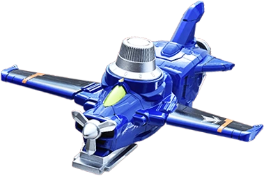 The Blue Dial Fighter (ブルーダイヤルファイター Burū Daiyaru Faitā) is the air racer-based Mecha of Lupin Blue. It forms the right arm of LupinKaiser and the second right arm of Good Cool Kaiser VSX. Its Attack Mode deploys its gatling gun. Its code is 2-6-0.