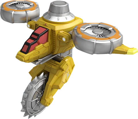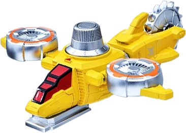 The Yellow Dial Fighter (イエローダイヤルファイター Ierō Daiyaru Faitā) is the "future copter" Mecha of Lupin Yellow. It forms the left arm of LupinKaiser and the second left arm of Good Cool Kaiser VSX. Its Attack Mode deploys its buzzsaw for attacking, such as cutting down an advertisement board to repel attackers. Its code is 1-1-6.