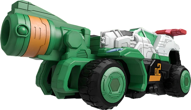 Trigger Machine 2gou (トリガーマシン2号 Torigā Mashin Nigō) is the personal mecha of Patren 2gou. It forms the weaponized left arm of PatKaiser, and the right ankle of Good Cool Kaiser VSX. Its Attack Mode deploys the built-in cannon from its grill that is in the shape of a revolver barrel.