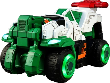 Trigger Machine 1gou (トリガーマシン1号 Torigā Mashin Ichigō) is the personal mecha of Patren 1gou. It forms the chest and head of PatKaiser, and the hat of Good Cool Kaiser VSX. Its Attack Mode reveals another pair of wheels along with a giant red tire that increases its acceleration & speed (similar to GoGo Formula from GoGo Sentai Boukenger).