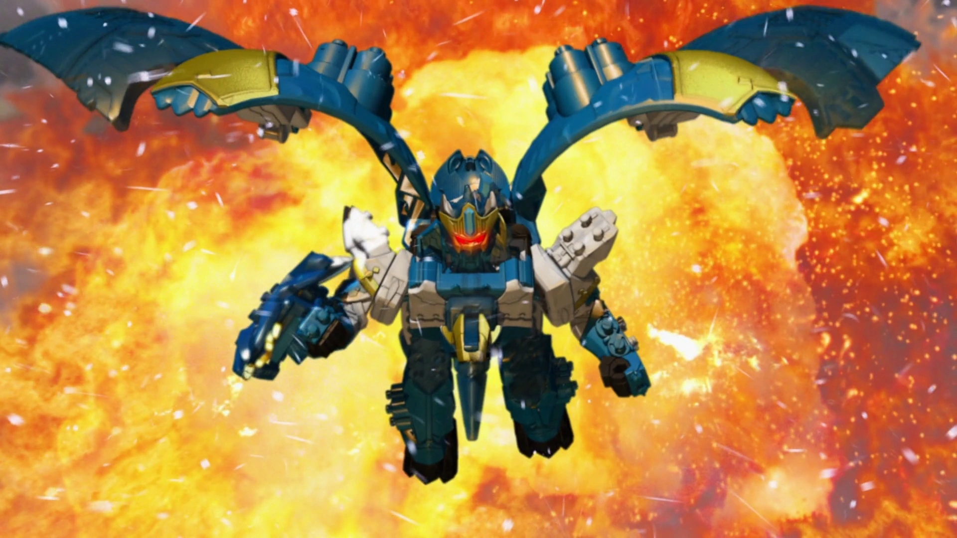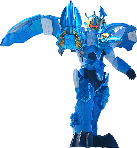 Ryusoul Gattai YokuRyuOh (竜装合体ヨクリュウオー Ryūsō Gattai Yokuryūō) is Kishiryu Pterardon's humanoid form with the HieHieSoul as its head which it changes into when Koh takes command. YokuRyuOh is the fastest Mecha the Ryusoulgers possess, capable of flight and can temporarily freeze the surrounding area for its own advantage. It wields the HieHie Claw on its right arm, which can be used for both offensive and defensive capability, and can attack with the YokuRyuOh Blizzard Storm (ヨクリュウオーブリザードストーム Yokuryuuō Burizādo Sutōmu), a freezing mist blast from the Pterardon Head. Its finisher is the YokuRyuOh Blizzard Claw Strike (ヨクリュウオーブリザードクローストライク Yokuryūō Burizādo Kurō Sutoraiku), where YokuRyuOh encases the HieHie Claw in solid ice and flies at superspeed before using it to pierce and destroy the Minosaur.