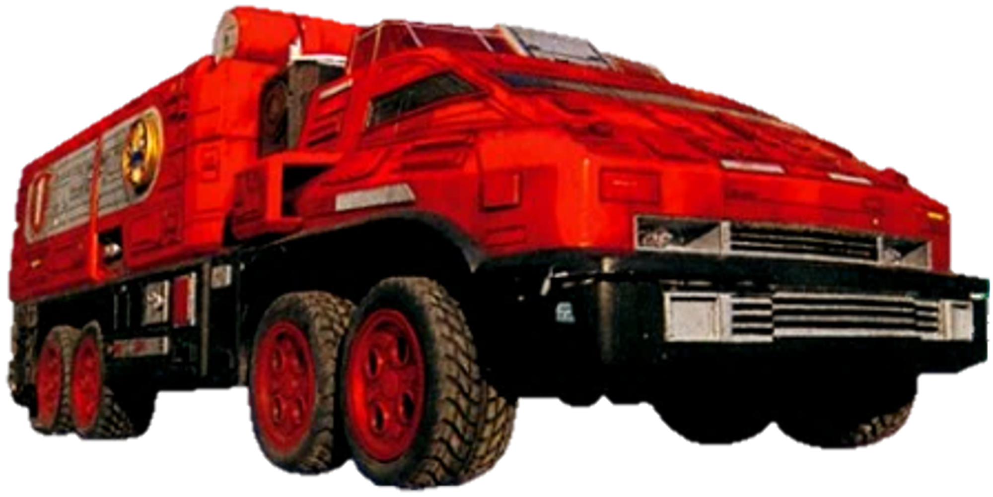 Pyro Rescue 1 is the red fire truck Zord piloted by Carter Grayson. It can use its ladder like arms for manipulating objects and rescue operations; it can deploy stabilizers from its front and rear bumpers.