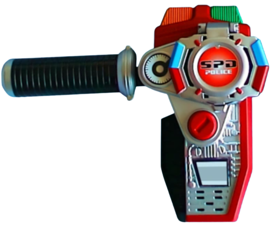 The Magna Morpher was designed by Kat Manx. The Morpher is based off of the design and technology of the Omega Morpher: It is used by The Red Ranger, to summon the S.P.D. Battlizer. The Magna Morpher gives the user the same abilities as the Omega Morpher.