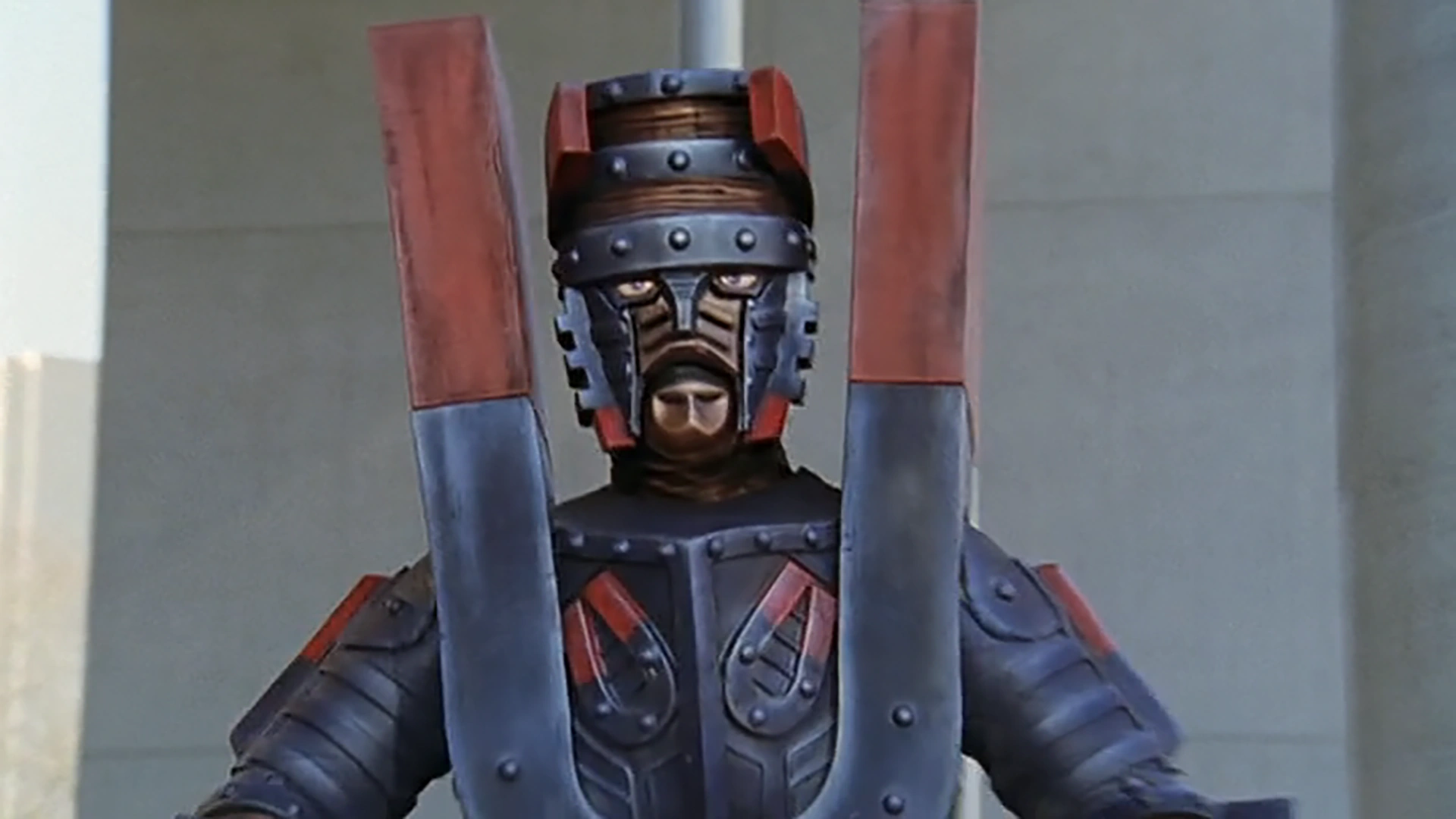 Magnet Banki (ジシャクバンキ Jishaku Banki) is a magnet-themed Barbaric Machine Beast. He would later be upgraded to become the Electromagnet Banki (デンジシャクバンキ Denjishaku Banki).