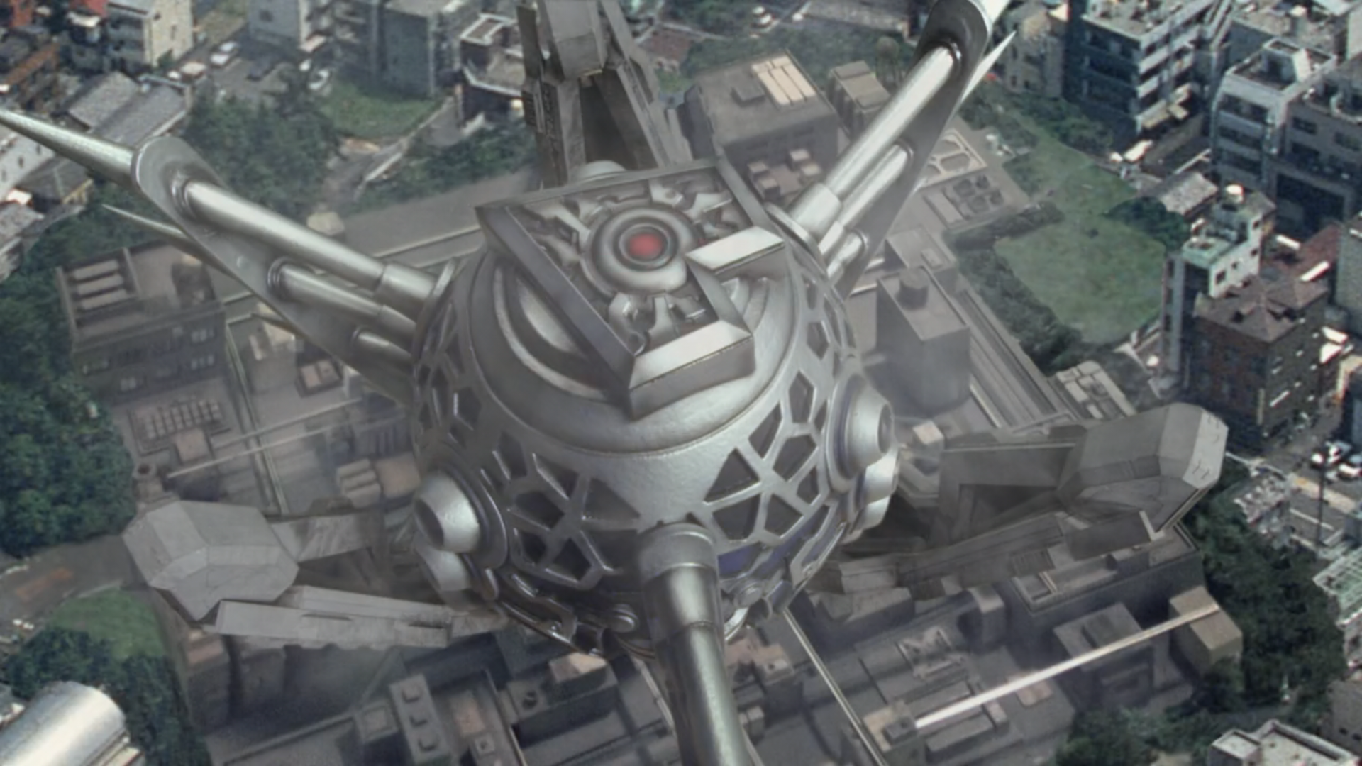 Omega is Enter's latest MegaZord that replaces Megazord Epsilon. It was completed when the giant cocoon created by Enter fused with the Enetron Tank dome along with the humans. It can also create and multiply its own cocoons derived from Enetron Tanks. It is a super-firearms combat type equipped with triple beam cannons on its shoulders, quad automatic 3000mm launchers on both arms, and numerous large and small reinforced Vulcan cannons and beam launchers all over its body. The most destructive of all is the Vagla Striker (ヴァグラストライカー Vagura Sutoraikā) main cannon on its chest, which fires super-high heat energy bullets made from concentrated Enetron, pulverizing any enemy into dust.