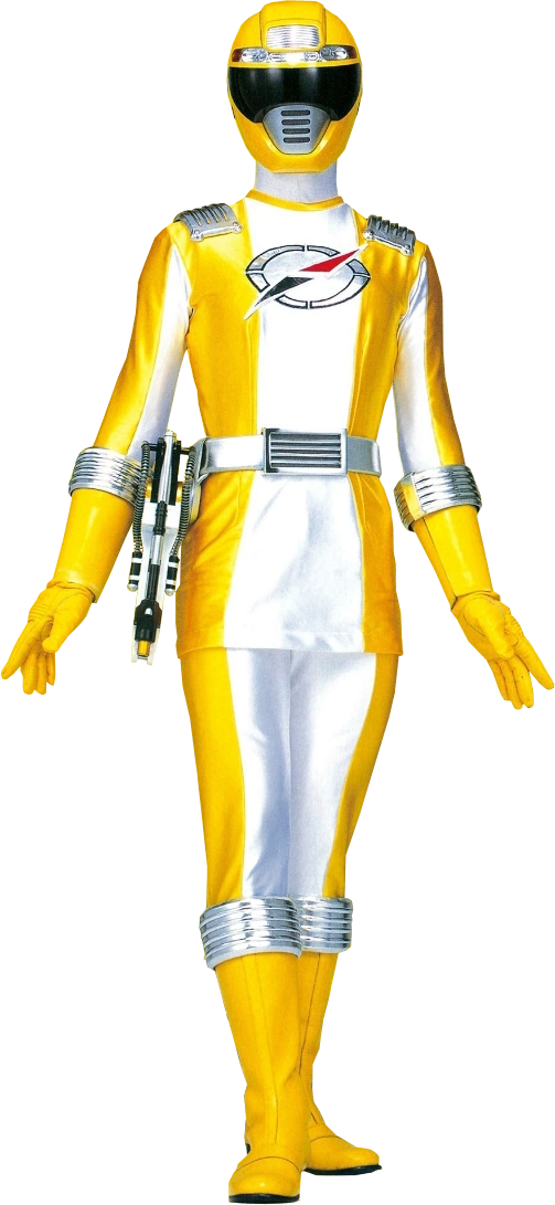 A manifestation of Bouken Yellow was summoned alongside her team by Vroon through the Boukenger Sentai Gear which allowed Vroon to shoot hyper concrete at Hakaizer to hold him in place to beat him.